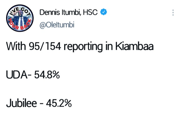 Jubilee demands recount of votes in 3 polling stations kiambaa contest between jubilee and uda tight as results stream in Free subscription get the news that matters from one of the leading news sites in kenya 1 hour ago · • currently, provisional results show uda's john njuguna leading with 21,606 votes followed closely by 21,151 votes with 153 out of 154 polling stations having reported their tallies. Jul 15, 2021 · the group of youth who confronted kimunya asked the kipipiri mp who is leading the jubilee campaign in kiambaa to leave the polling station. Wanjiku was leading with 21,401.